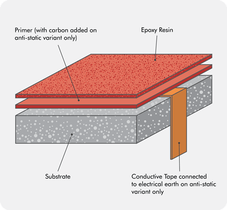 – Conductive/ESD flooring (epoxy or vinyl)